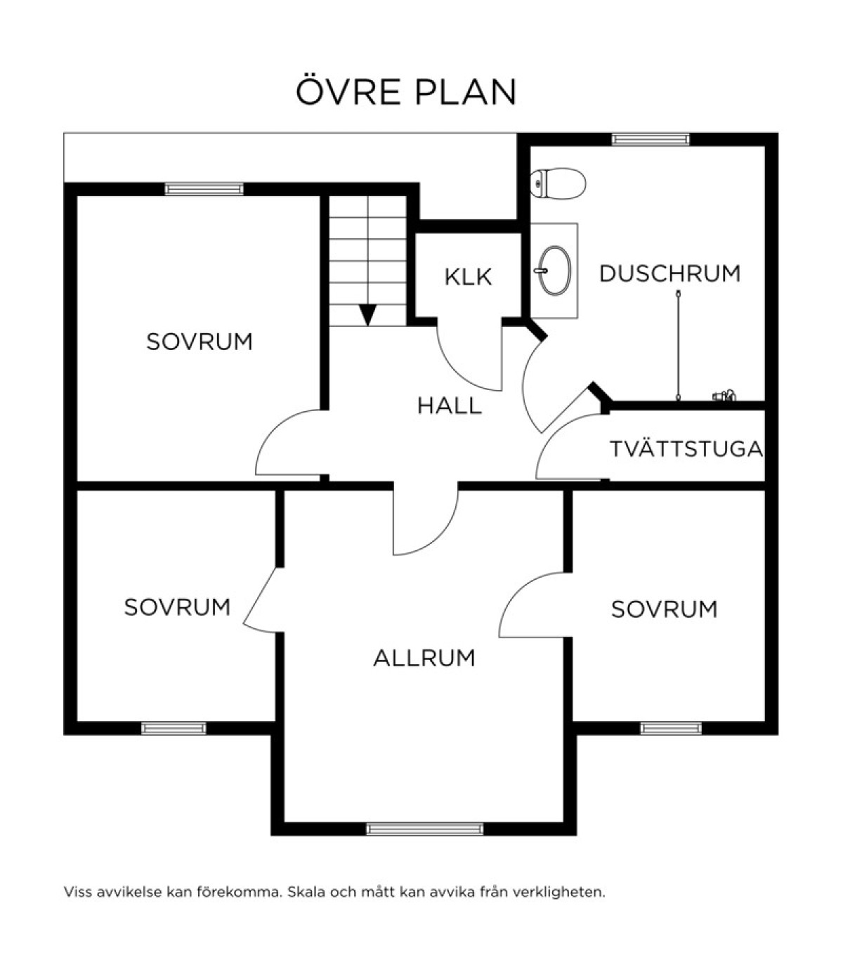 Allrummet präglas av en behaglig rymd där frontespisen ger full takhöjd om cirka 2,5 meter. Plankgolvet sätter en varm och levande ton, medan de generösa fönsterpartierna låter dagsljuset spela fritt i rummet. Ytan är väl tilltagen för en avkopplande tv-del eller varför inte barnens lekrum? För den som har behov av ytterligare ett sovrum på ovanvåningen finns här även möjlighet att disponera rummet som ett fjärde sovrum. Här finns också möjlighet att skapa platsbyggda garderobslösningar.