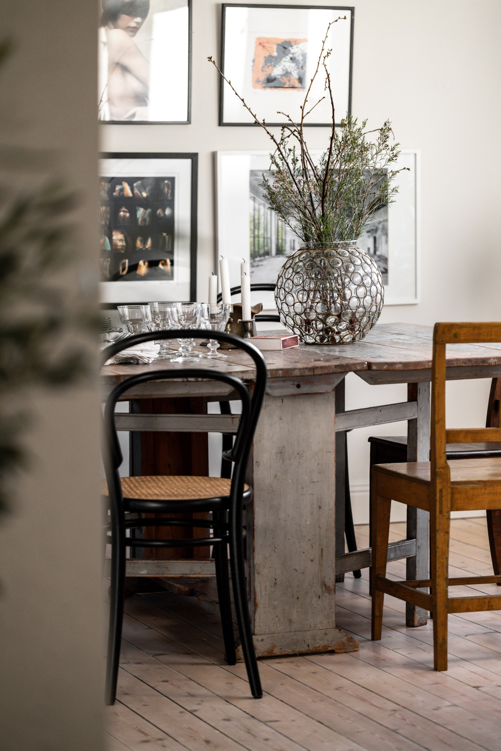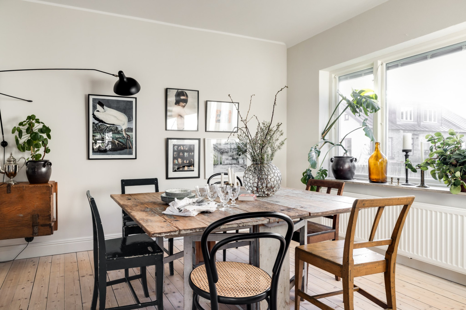 Matsalen är belägen i direkt anslutning till köket och utgör en naturlig samlingsplats i hemmet. Rummet präglas av en varm och inbjudande känsla med ett vackert plankgolv som tillsammans med de höga, gedigna socklarna förstärker rummets tidstypiska karaktär. Här finns gott om utrymme för ett stort matbord, med plats för hela familjen och generösa middagar i goda vänners lag. En självklar plats för såväl vardag som fest, där hemmet verkligen får visa sin sociala sida.