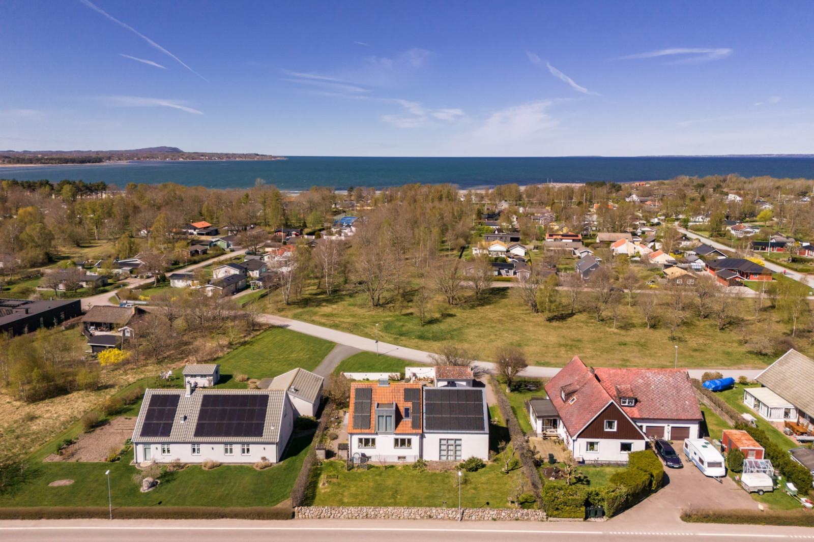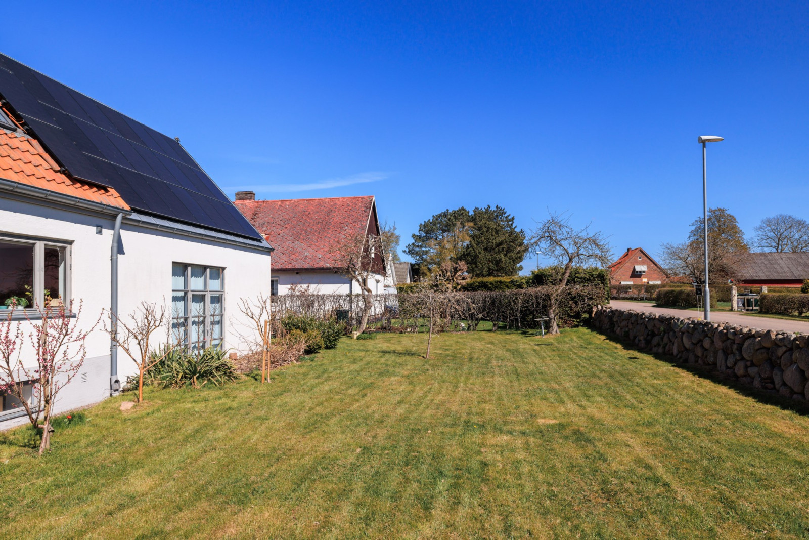 I förlängningen av vardagsrummet ligger två stora sovrum om cirka 11 kvm. vardera. Snyggt, uppvärmt klinkergolv och båda med altandörrar till trädgården.