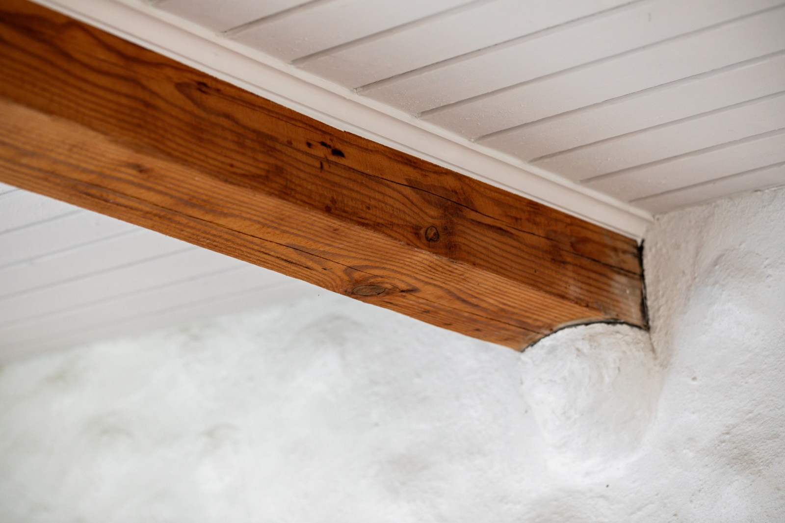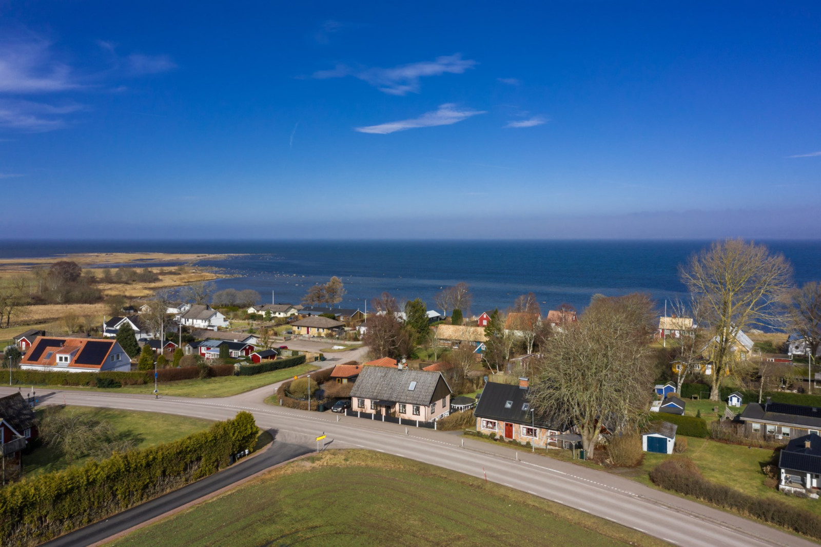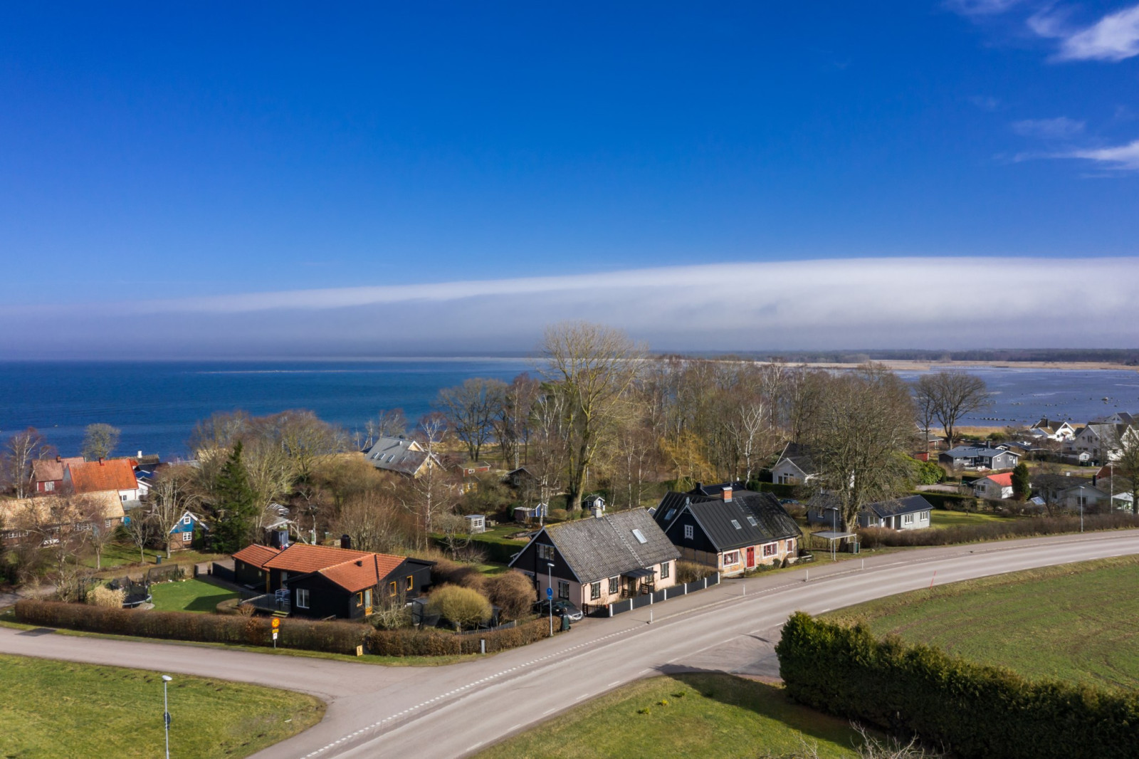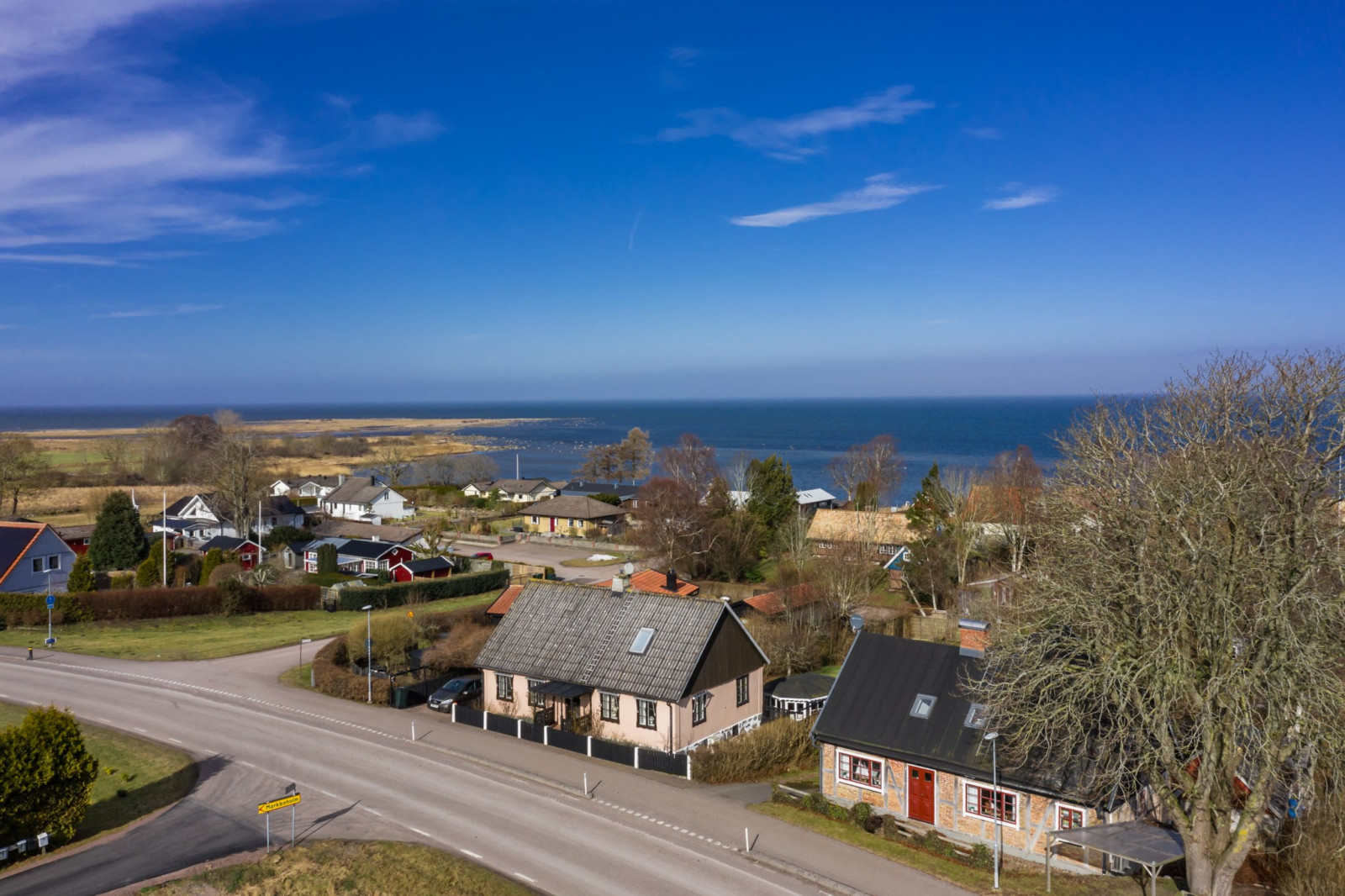 Själva köksdelen är centralt placerad och generös i sin storlek och har utgång mot baksidan, vilket ger en smidig koppling mellan kök, trädgård och uteplats. Synliga takbjälkar och en vitputsad stenvägg bidrar till atmosfären och ger rummet en genuin karaktär. Köket renoverades senast 2019-2020. Köksinredningen har ljusa målade luckor och gott om plats i skåp och lådor med bra arbetsytor.