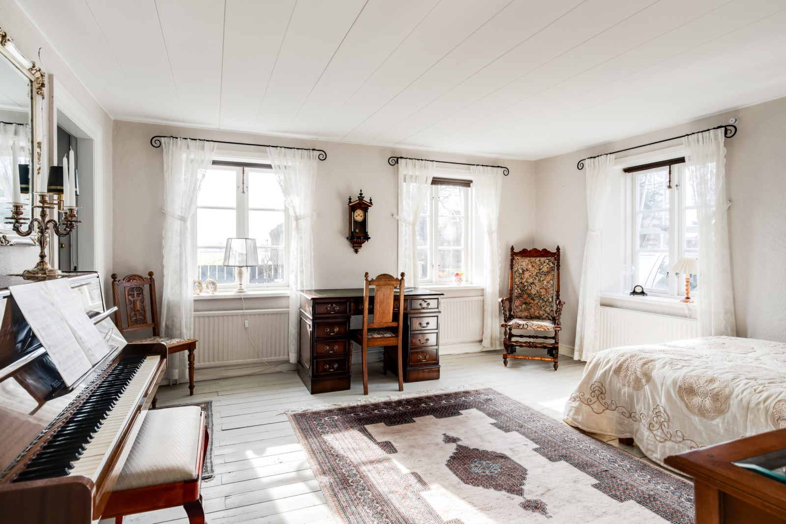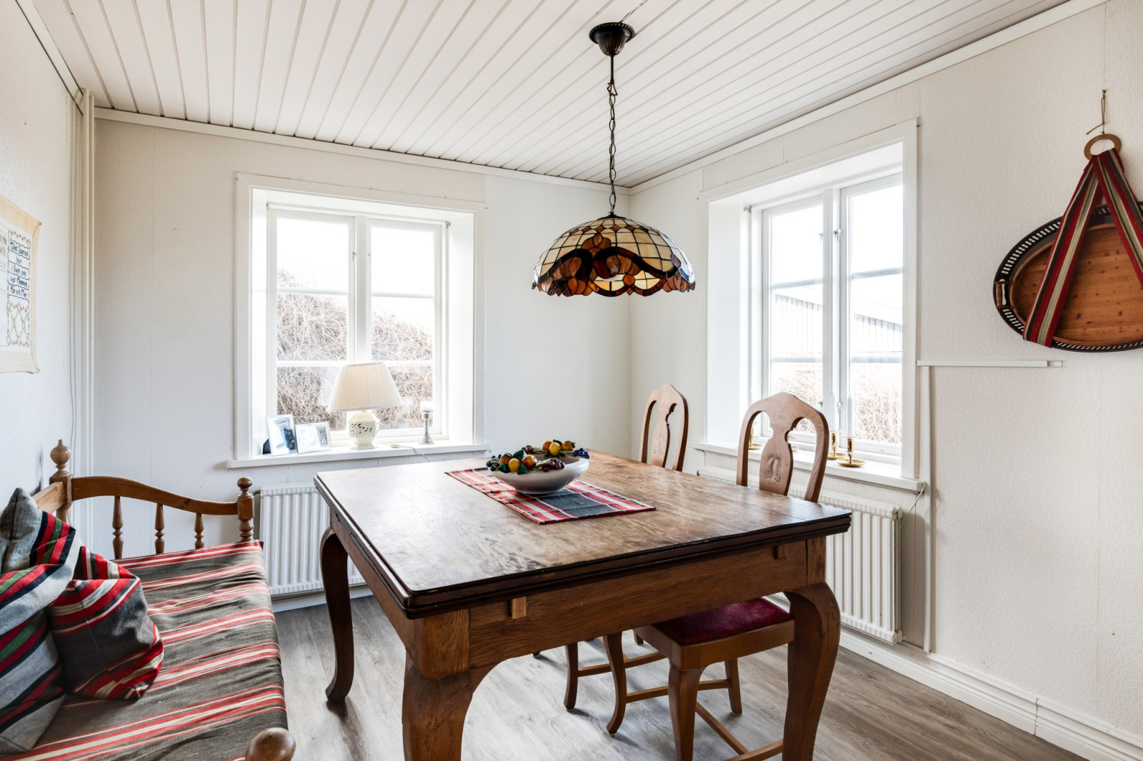 I anslutning till köket finns en separat matplats som erbjuder en trivsam miljö för både vardagsmåltider och middagar i goda vänners lag. Härifrån har man en fin utsikt över trädgården, vilket skapar en lugn och rogivande atmosfär