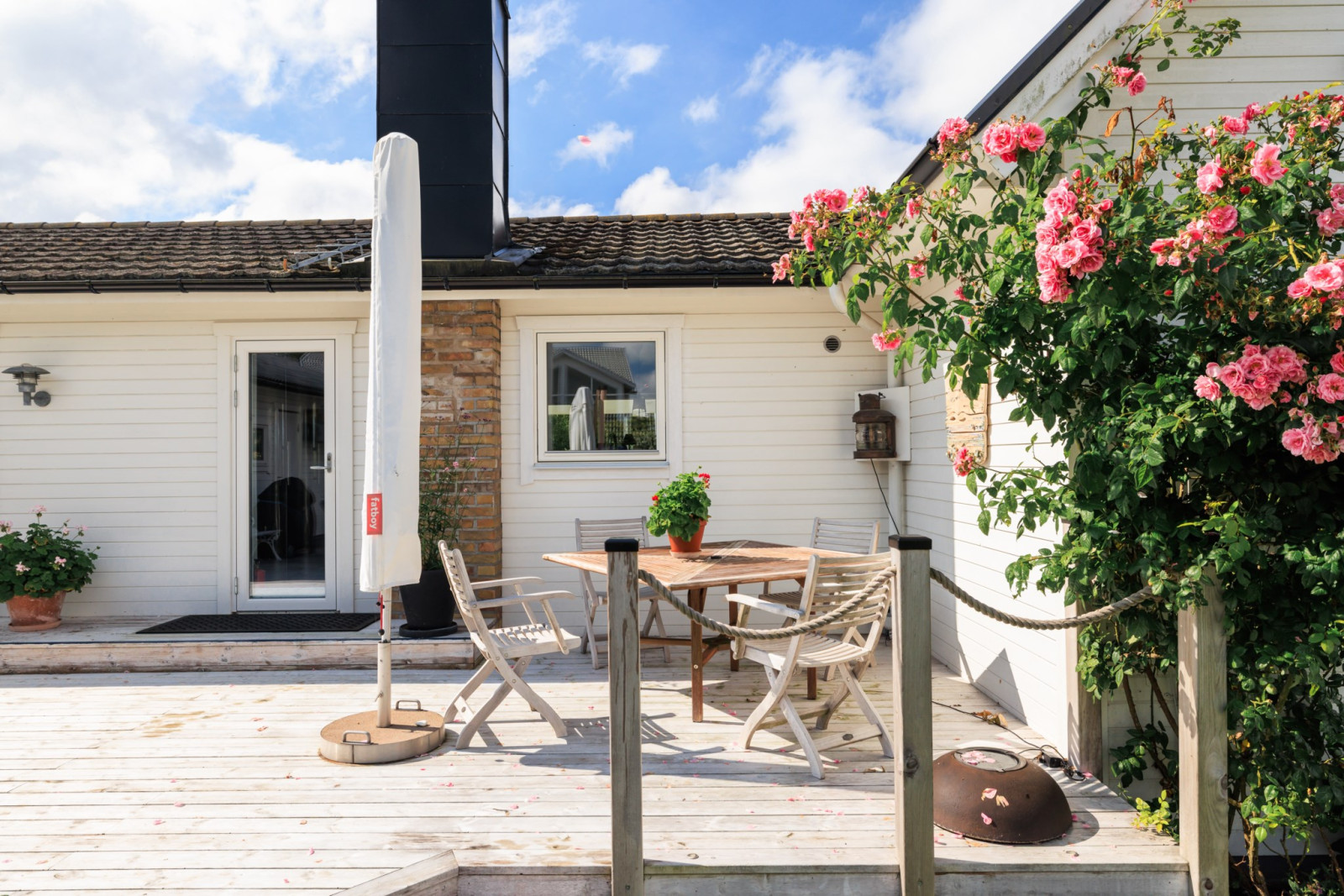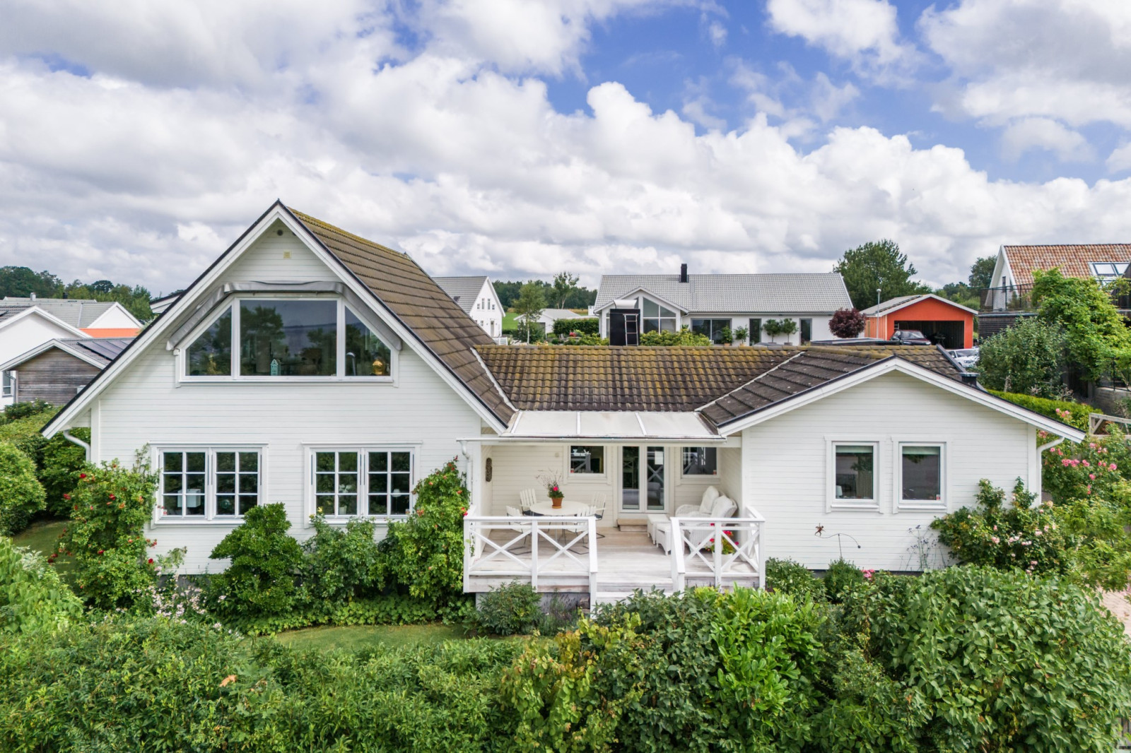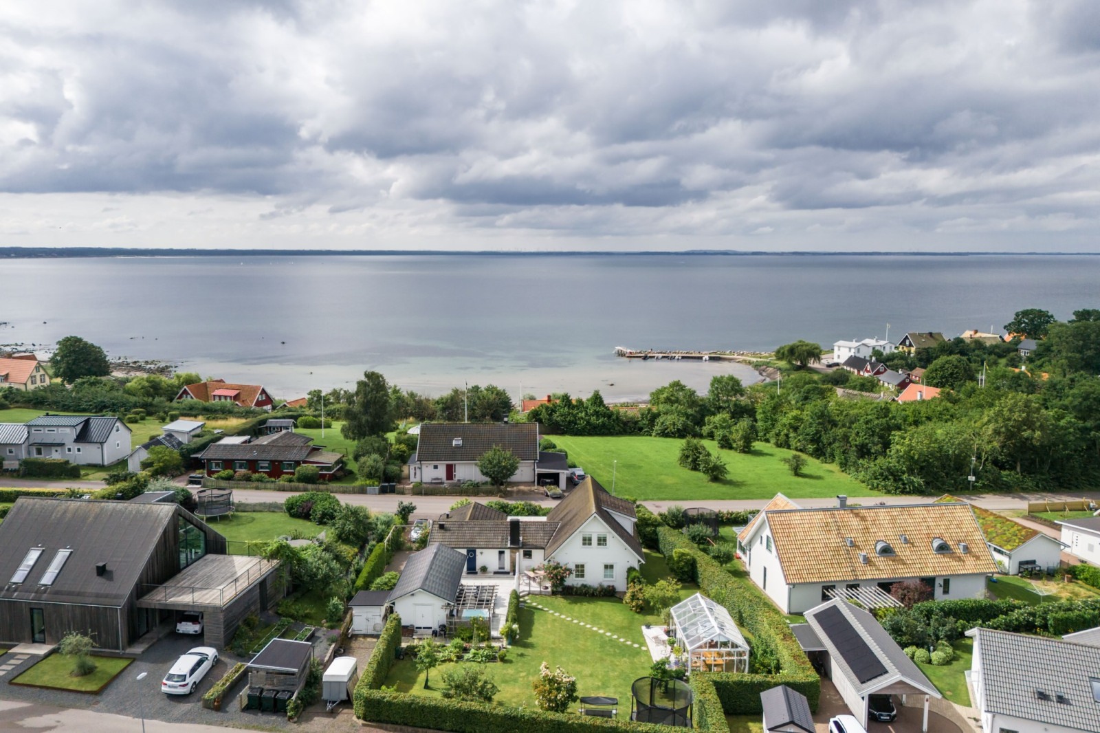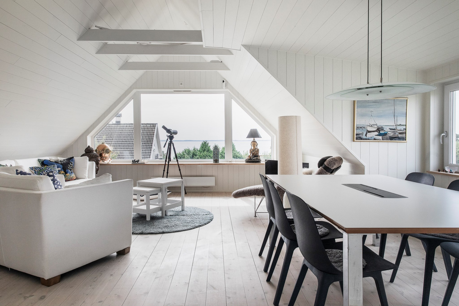 Härligt allrum med öppet upp i nock som skapar en fantastisk rymd. Det stora glaspartiet vetter mot havet och bjuder på en enastående utsikt. För extra komfort finns en eldriven markis till fönstret. Rummet är flexibelt och kan enkelt delas av för att skapa ytterligare ett sovrum vid behov.