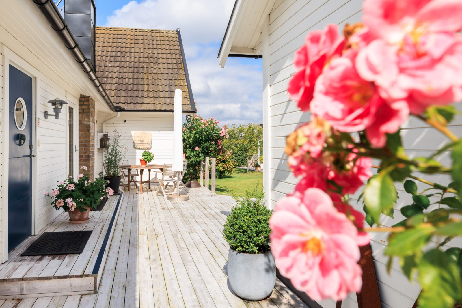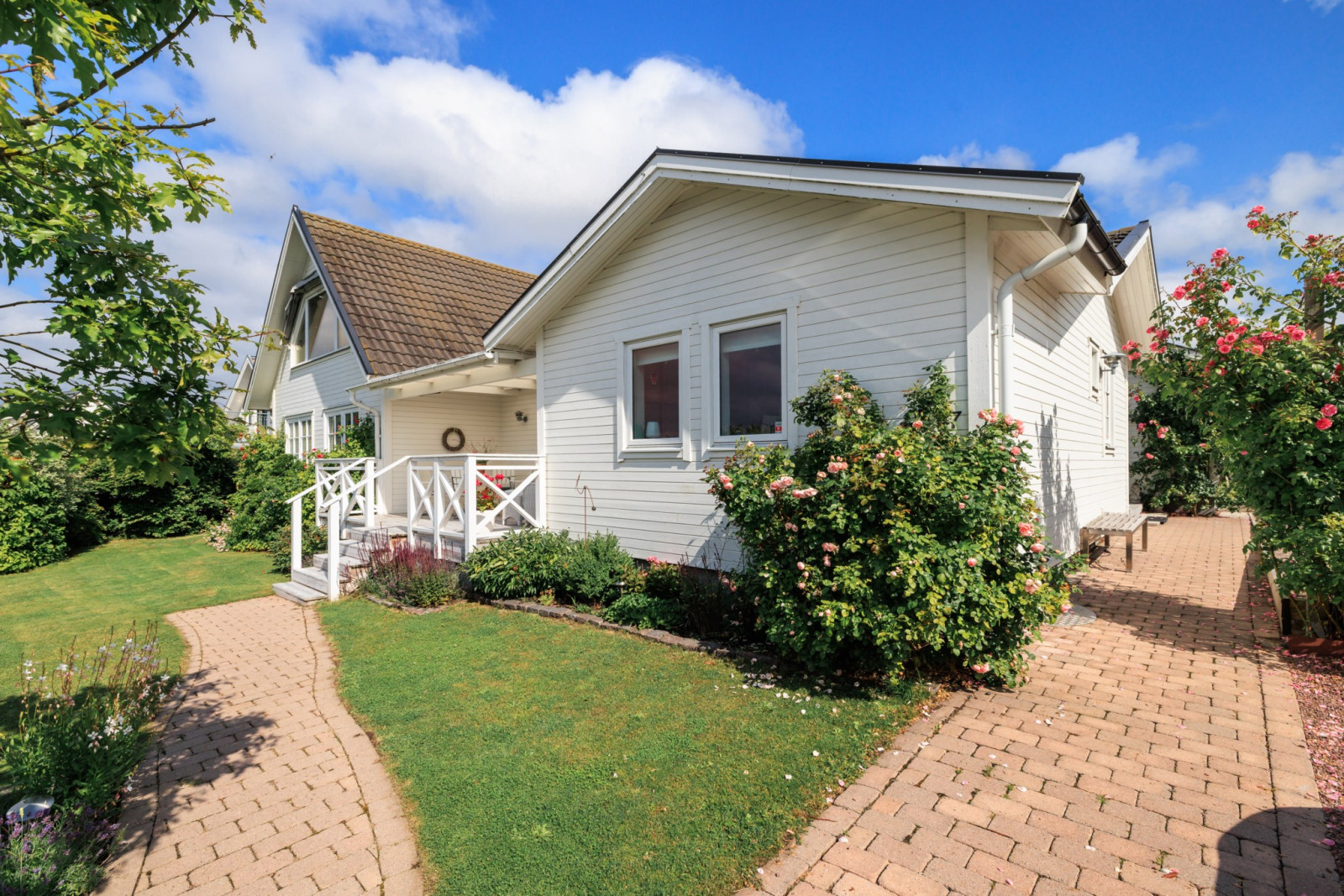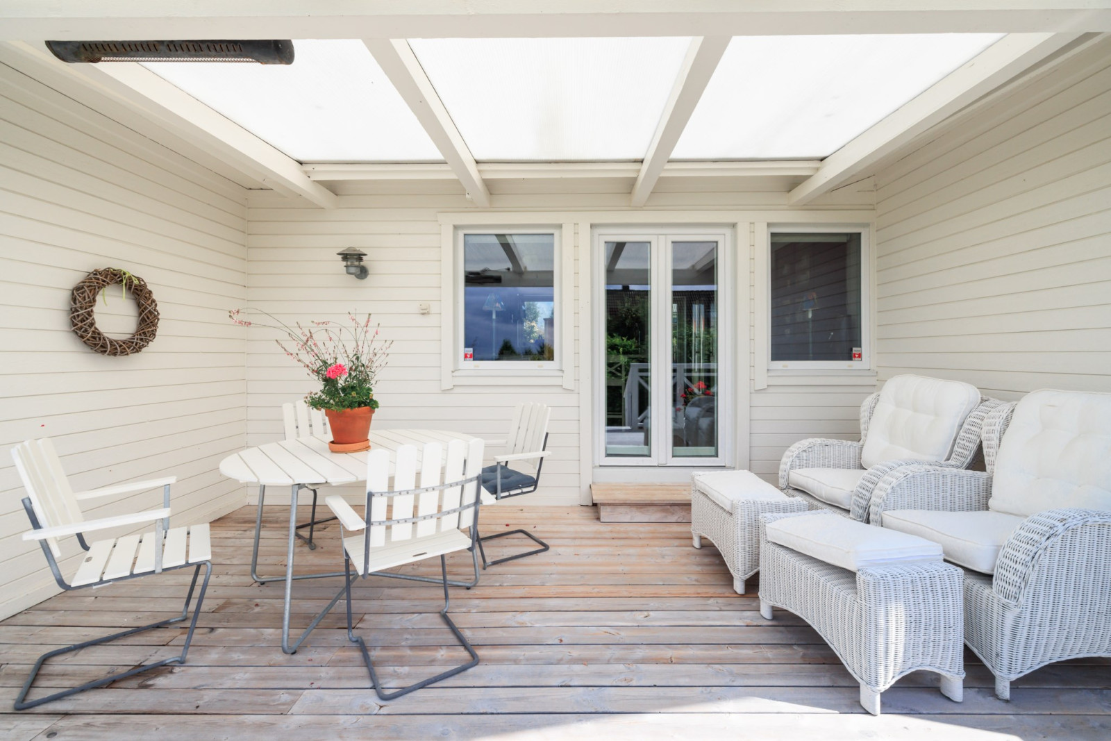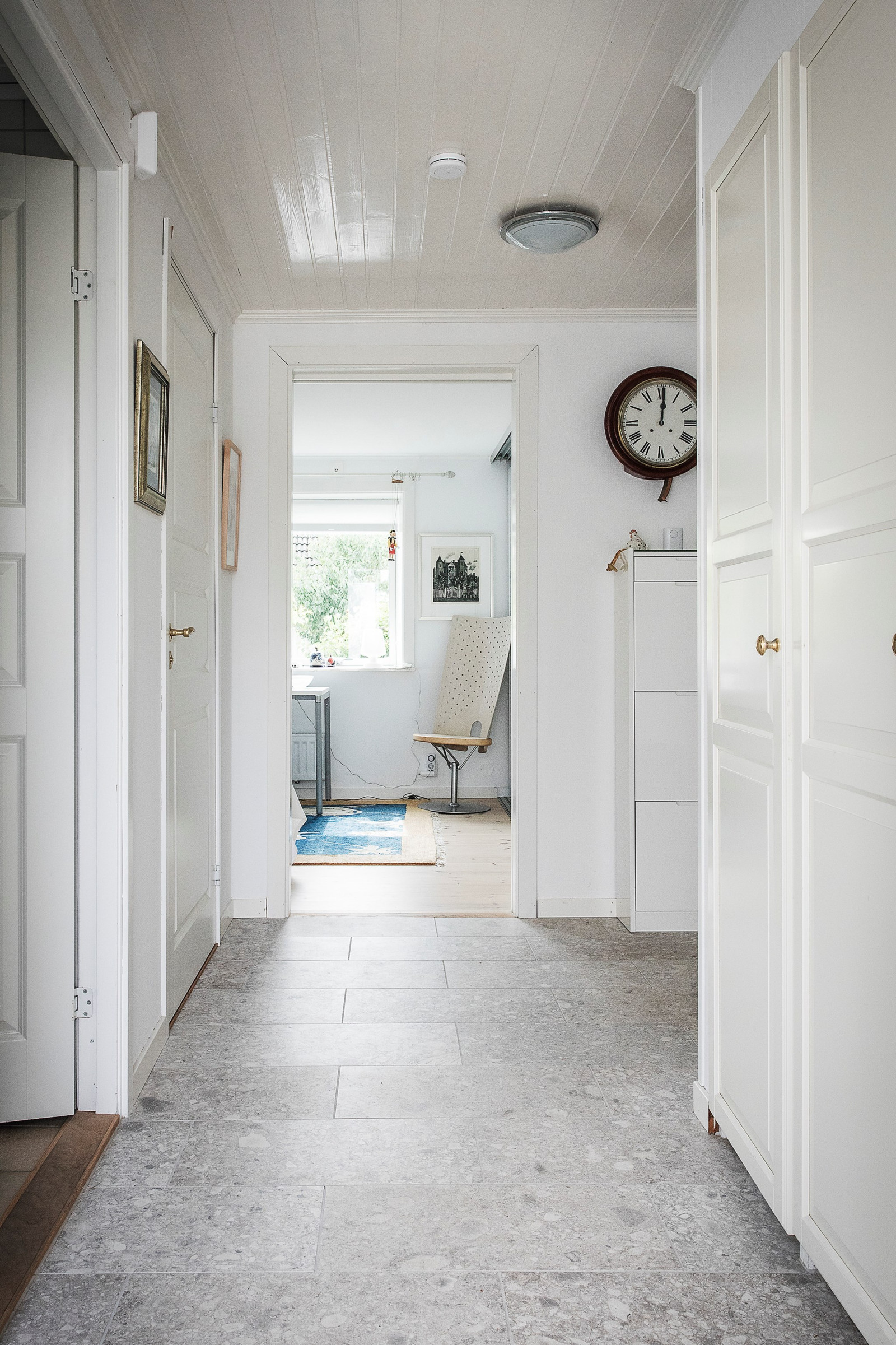 Vitlaserat trägolv löper genom större delen av entréplanet och skapar en enhetlig och ljus känsla.