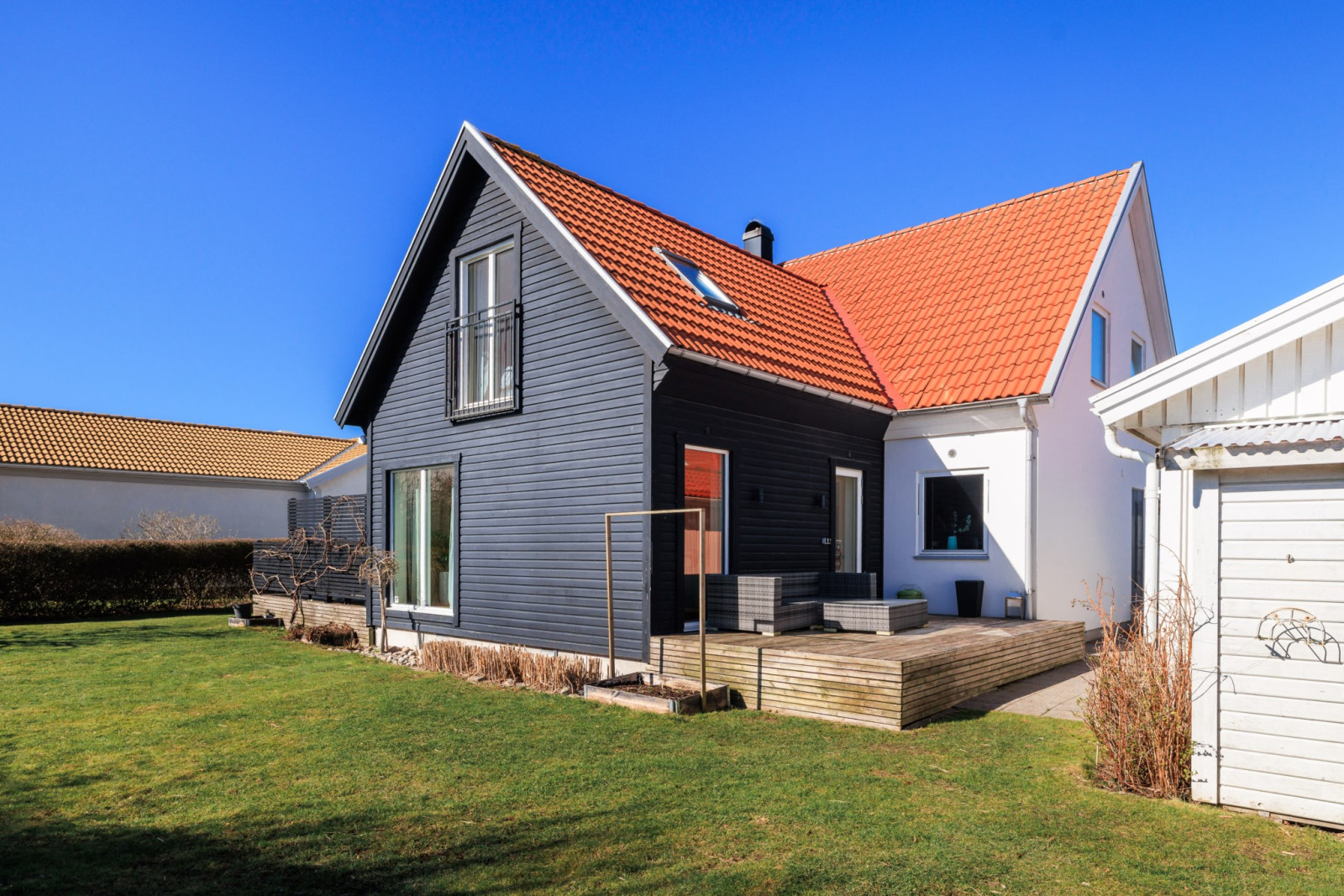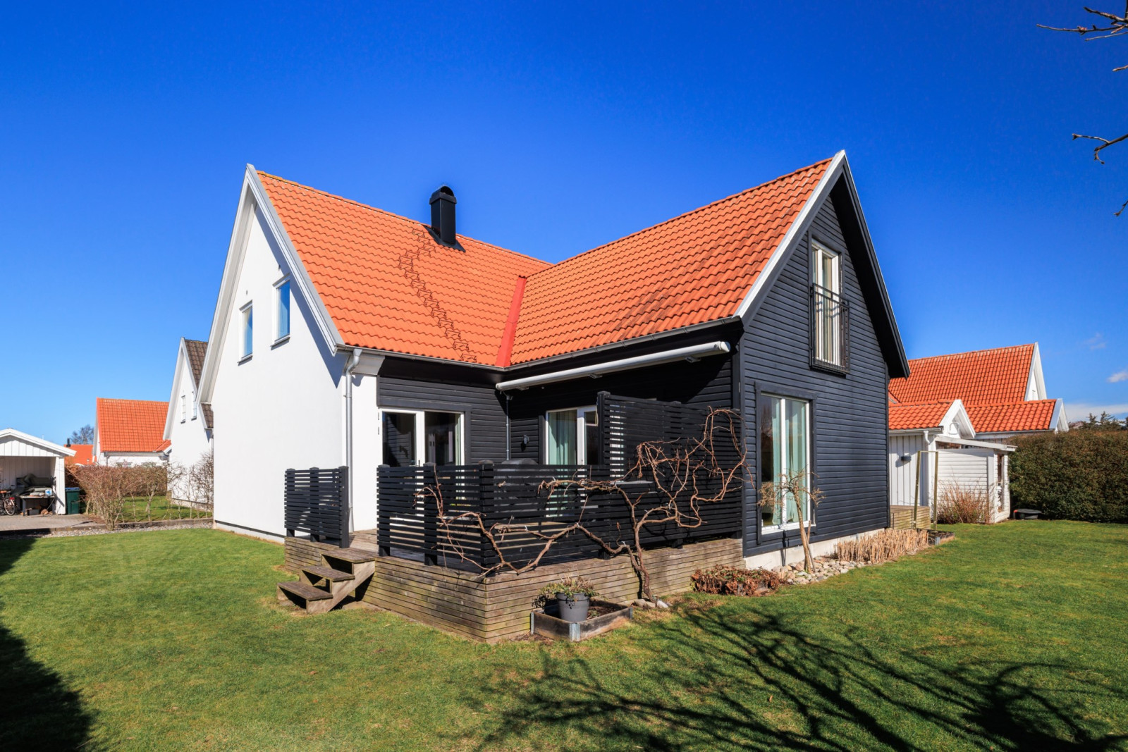 värmepumpen upp till 18 år. Centraldammsugaren är inte i bruk. Alla trädgårdsredskap önskar säljaren följer med köparen ink robotgräsklippare i trädgården. Offerdal skiffer ute på entré trappa. Hela huset styrs med plejd och en Yale Dormann i alla ytterdörrar. Fiber finns vid tomtgränsen. Elförbrukning 23 379kWh/år, elbil