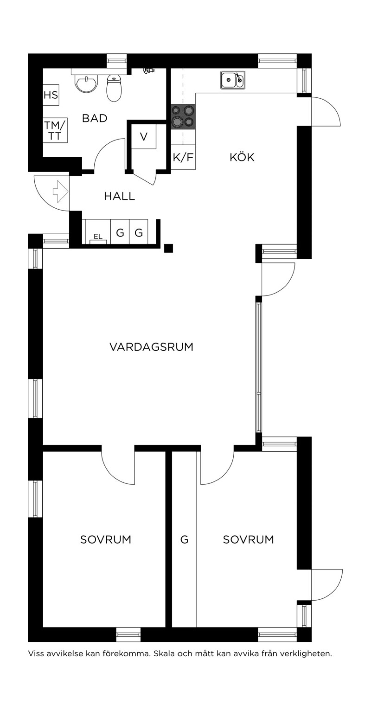 Bostaden erbjuder en genomtänkt planlösning med två rofyllda sovrum, ett fräscht badrum med dusch och praktisk tvättavdelning samt ett inbjudande kök och vardagsrum i öppen planlösning. De stora fönsterpartierna skapar ett härligt ljusinsläpp och ger rummet en luftig och harmonisk känsla. Här suddas gränsen mellan ute och inne ut tack vare altandörrar från både kök och vardagsrum som leder ut till den privata uteplatsen.