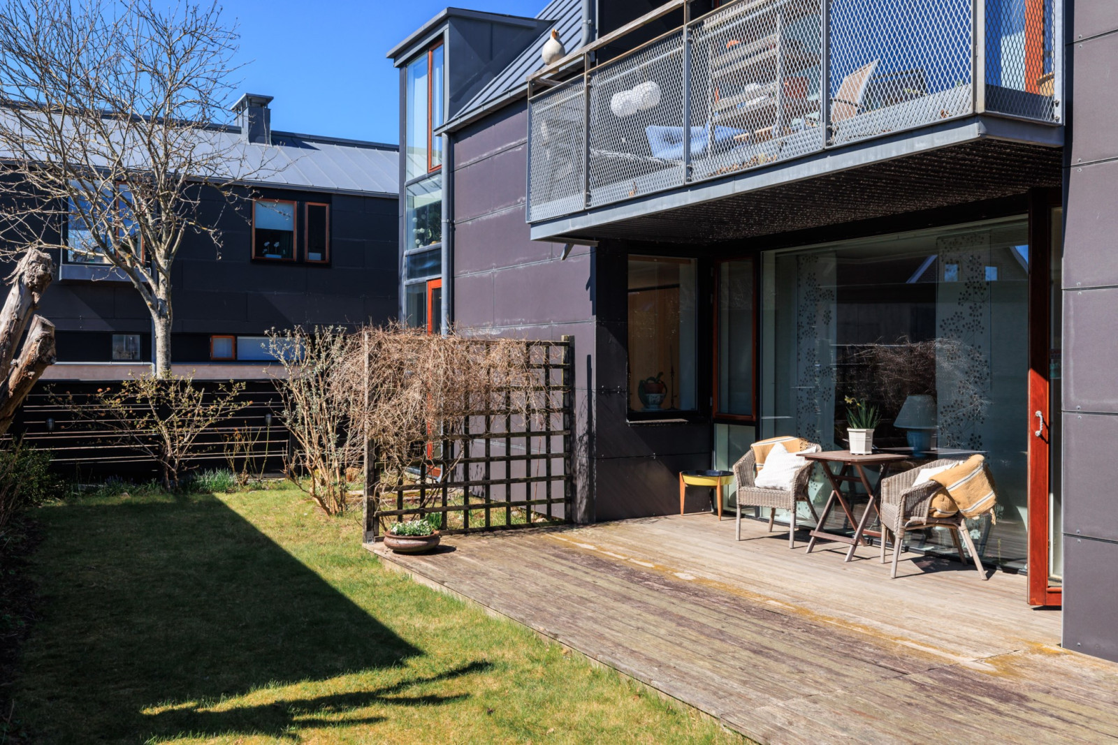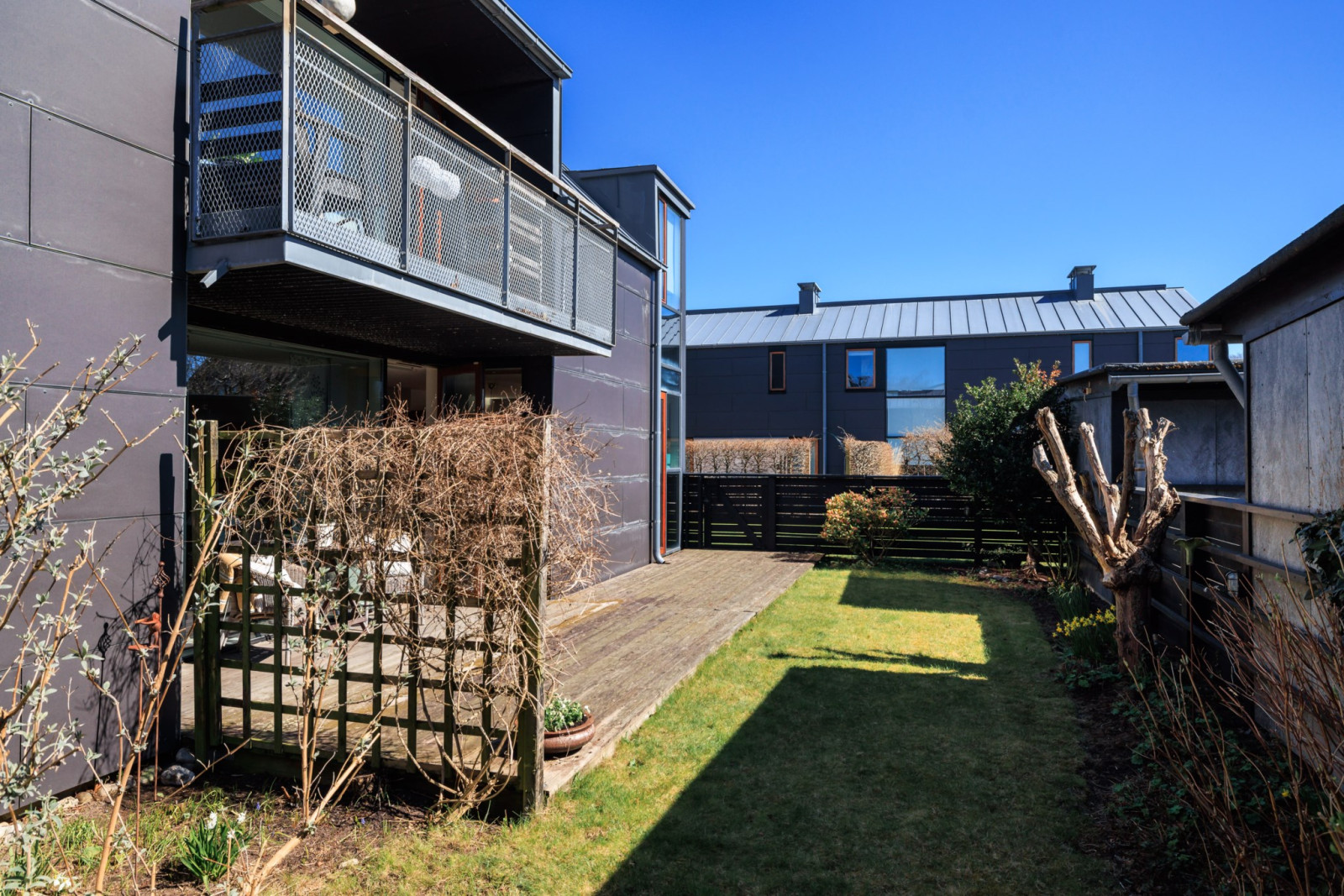 Uteplatsen blir en naturlig förlängning av bostaden under årets varmare månader och är en perfekt plats för långa middagar, avkopplande stunder i solen och sociala tillställningar med familj och vänner. Här finns gott om utrymme att skapa en personlig oas med utemöbler och grönska efter egen smak. I direkt anslutning till bostaden finns carport samt ett praktiskt förråd som förenklar vardagen.