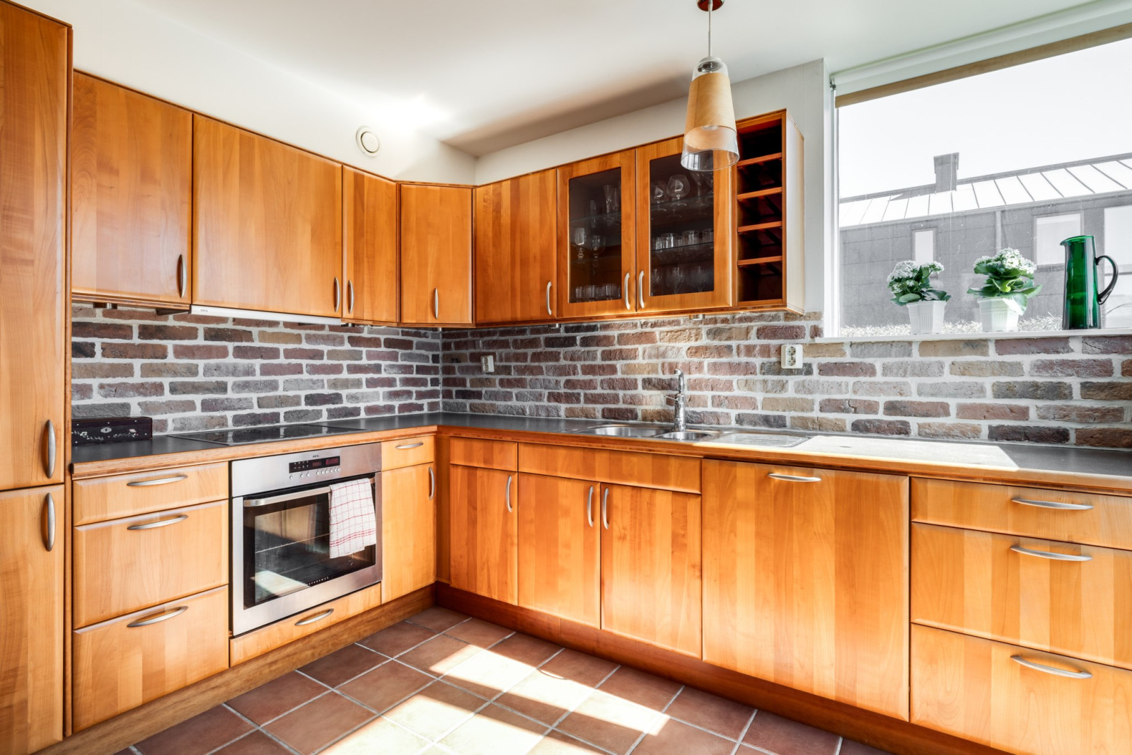 Klinkergolv, inbyggda garderober.